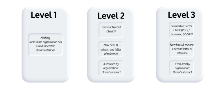 ** A Vulnerable Sector Check/Screening (VSC/VSS) includes a Criminal Record Check.